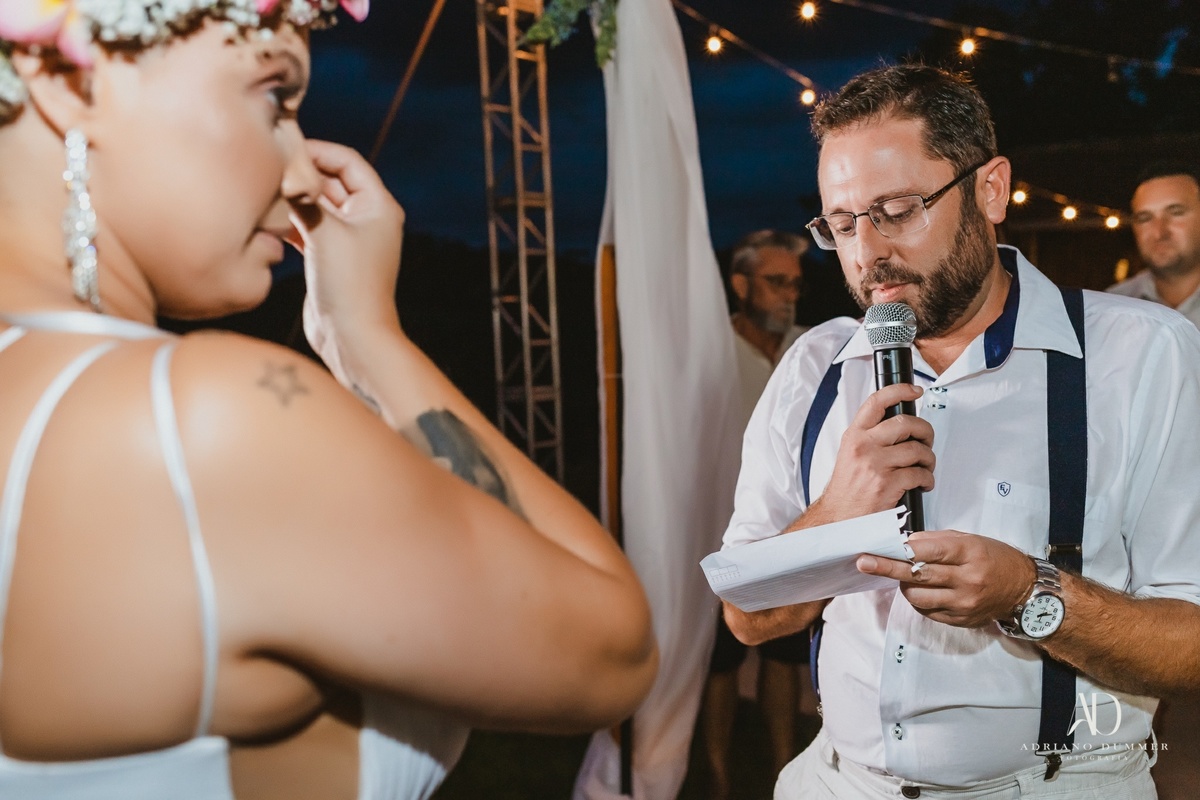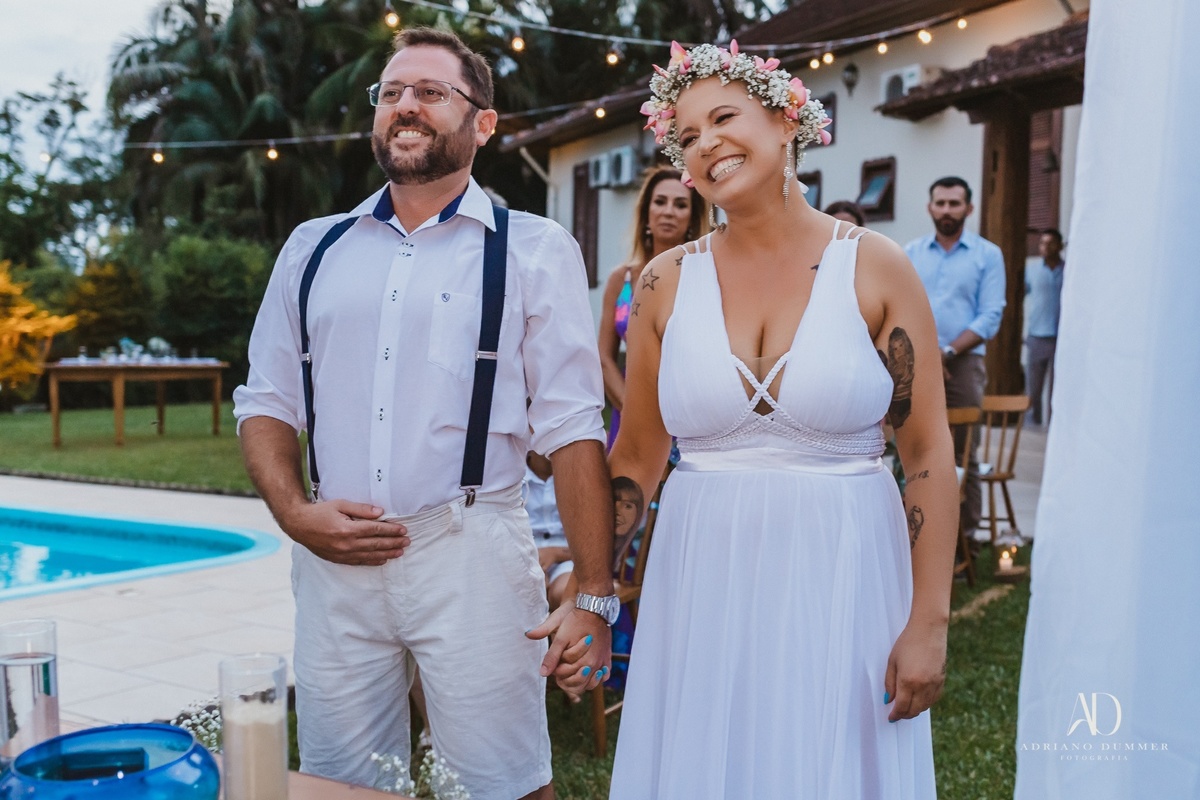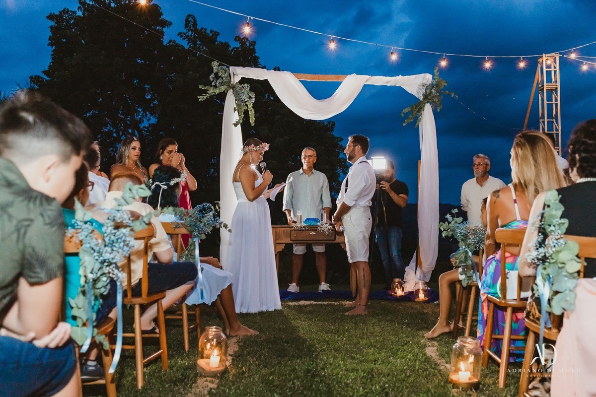 A cerimônia, realizada com a benção de Iemanjá, simbolizou a união dos elementos da natureza e a força do amor, e foi um momento inesquecível que marcará para sempre a vida dos noivos.
